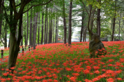 김천 직지사, 입구에서 만세교까지 '꽃무릇' 만개