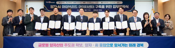구미시는 27일 경북도청에서 경상북도, ㈜SDT, 구미전자정보기술원, 모빌린트, Anyon Technologies, ㈜마키나락스, ㈜I-ESG, LS증권 등 기술·투자·행정 분야 9개 핵심 기관과 「양자·AI 하이브리드 데이터센터 구축을 위한 업무협약(MOU)」을 체결했다고 밝혔다.이번 협약은 양자연산장치(QPU)와 AI반도체(GPU·NPU)를 결합한 하이브리드 데이터센터를 구축하고, 이를 기반으로 지역 주력산업의 ‘양자전환(QX, Quantum Transformation)’을 본격 추진하기 위해 마련됐다.